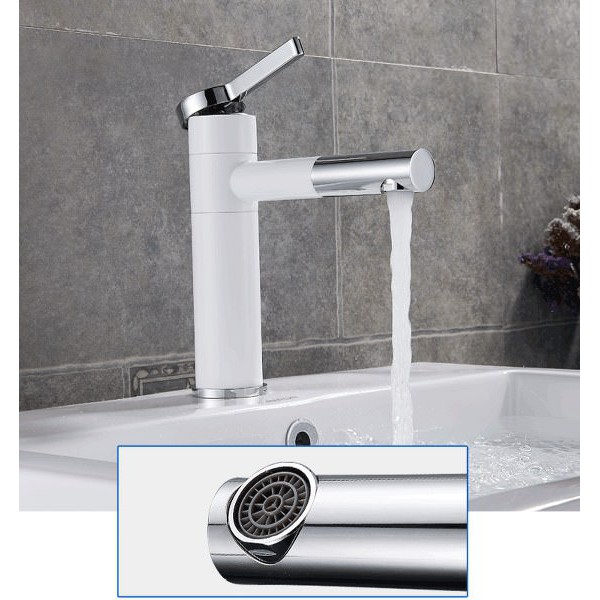 Nhà cửa & Đời sống > Dụng cụ & Thiết bị tiện ích > Chậu rửa & vòi nước || Vòi Lavabo nóng lạnh (Bóng kính, MÀU TRẮNG, chân vừa) - Hàng Siêu cấp ITALIA (Kèm đôi dây cấp nước)Còn hàng