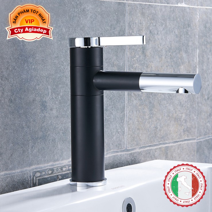 Nhà cửa & Đời sống > Dụng cụ & Thiết bị tiện ích > Chậu rửa & vòi nước || Vòi Lavabo nóng lạnh (Bóng kính, MÀU ĐEN, chân vừa) + 2 dây cấp - Siêu cấp ITALIACòn hàng