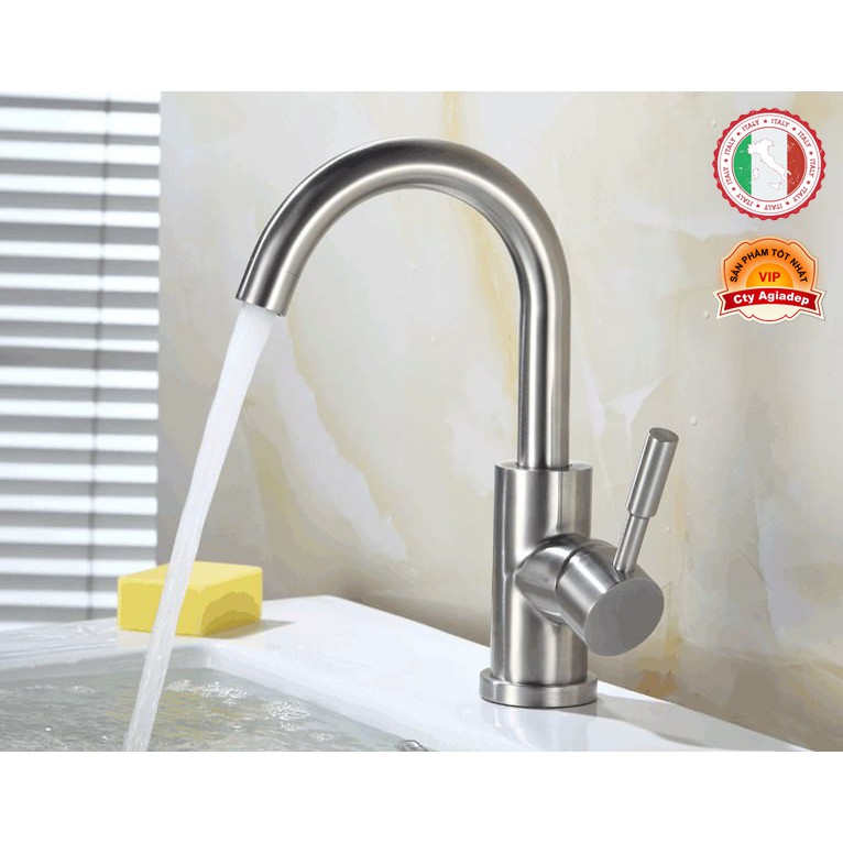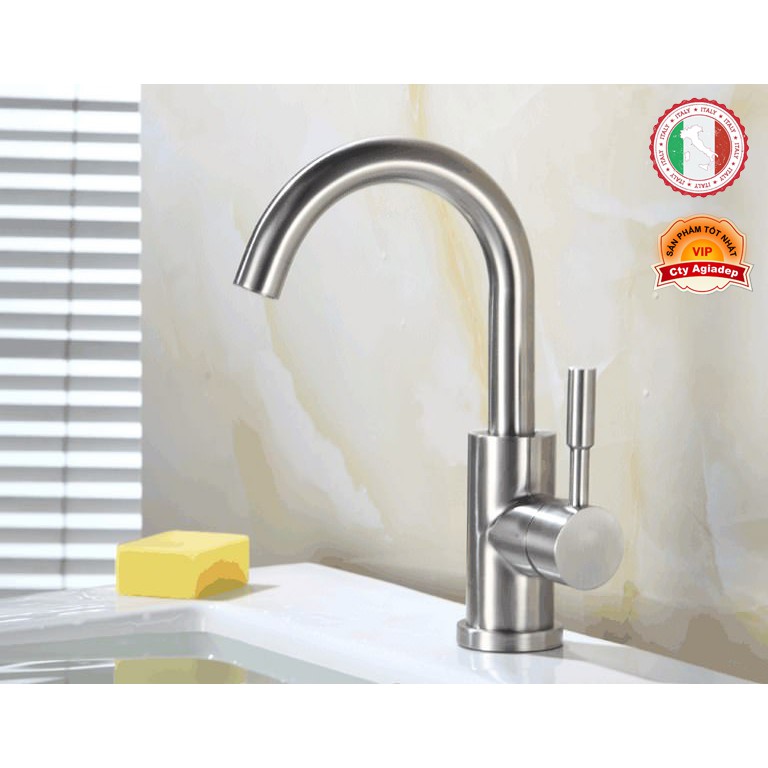 Nhà cửa & Đời sống > Dụng cụ & Thiết bị tiện ích > Chậu rửa & vòi nước || Vòi Lavabo nóng lạnh (cần cong) SUS304 - Cao cấp ITALIA (Kèm đôi dây cấp nước)Còn hàng