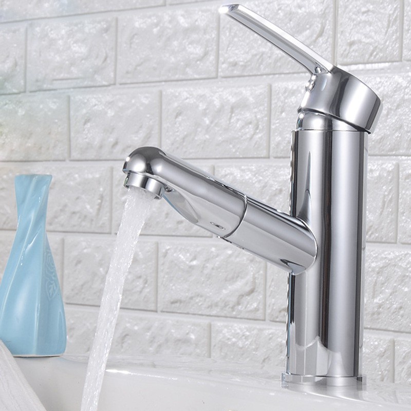 -Bộ vòi lavabo nóng lạnh có thể kéo rút đầu vòi tùy ý, tiện dụng cho việc rửa mặt, tẩy trang của chị em phụ nữ và nhiều công việc lau rửa tiện dụng khác.