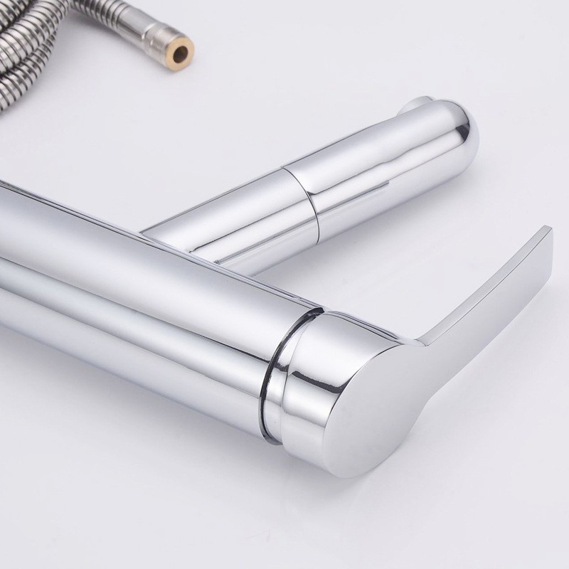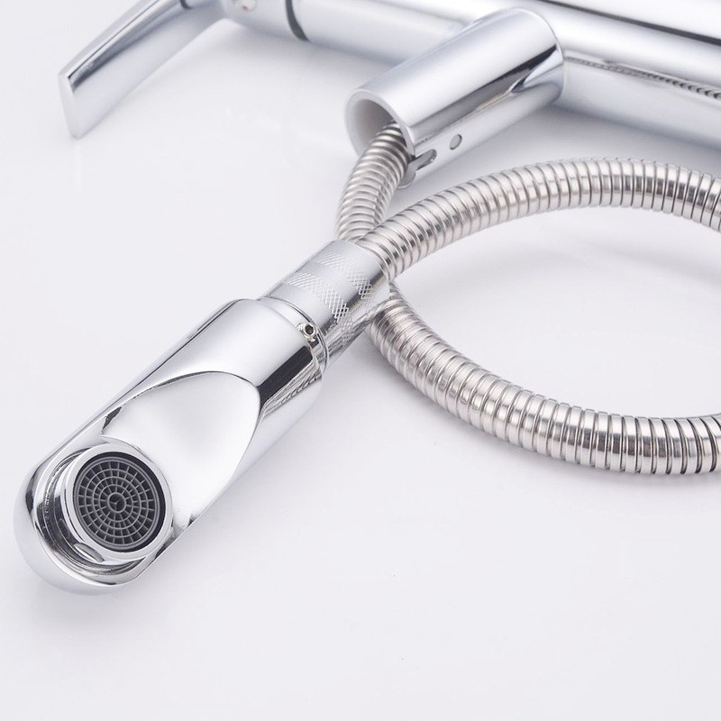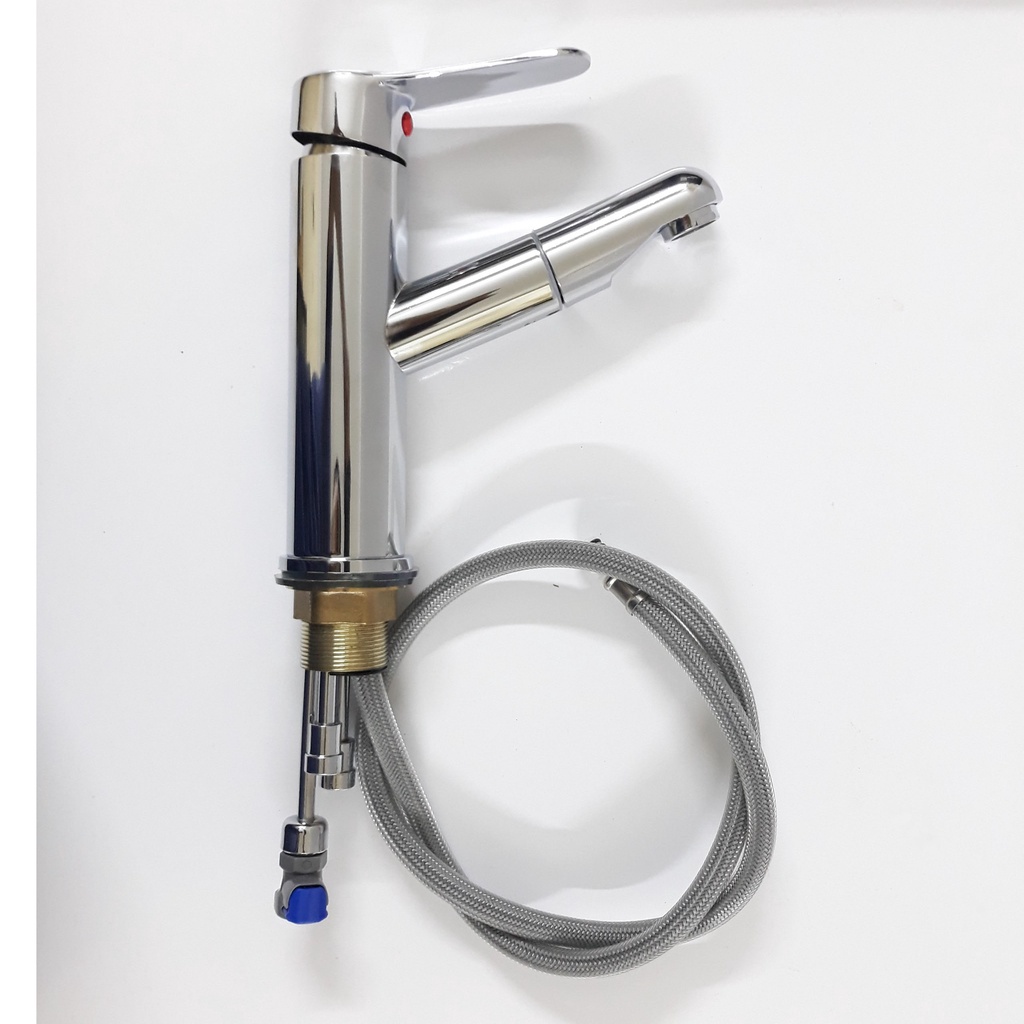 - Kiểu dáng: đứng, có thể kéo đầu vòi ra rất tiện dụng trong việc cọ rửa chậu lavabo hoặc cọ rửa các thiết bị phụ kiện trong nhà tắm