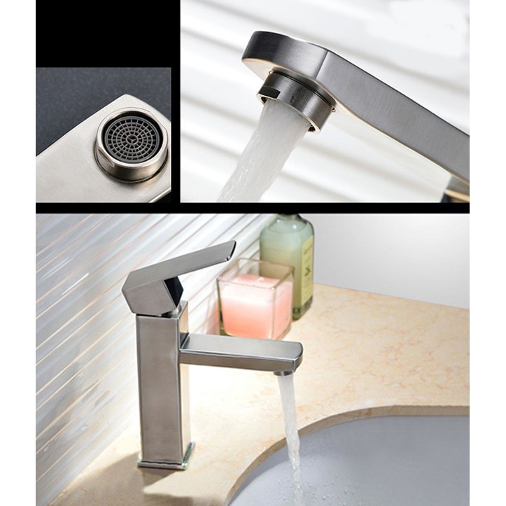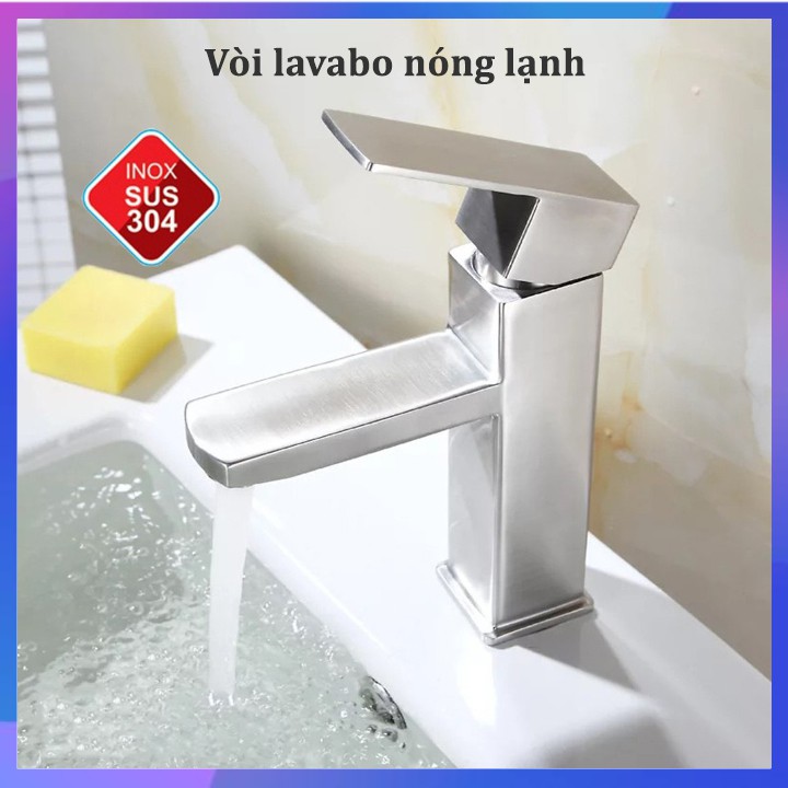 Vòi Lavabo Nóng Lạnh inox 304 mờ kiểu tay vuông☎ Hotline: 038.779.1115