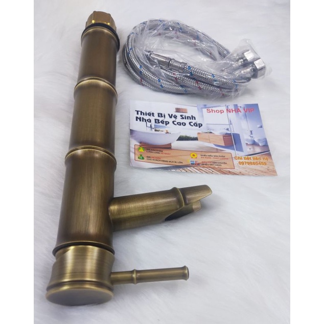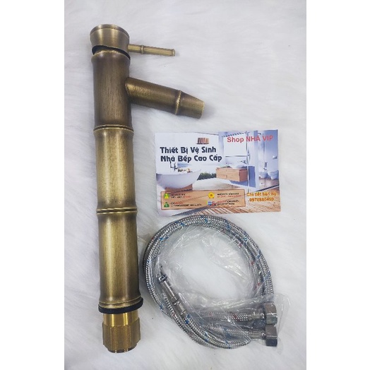 Vòi lavabo nóng lạnh ống trúc, 30cm, giả cổ, sang trọng, tinh tế