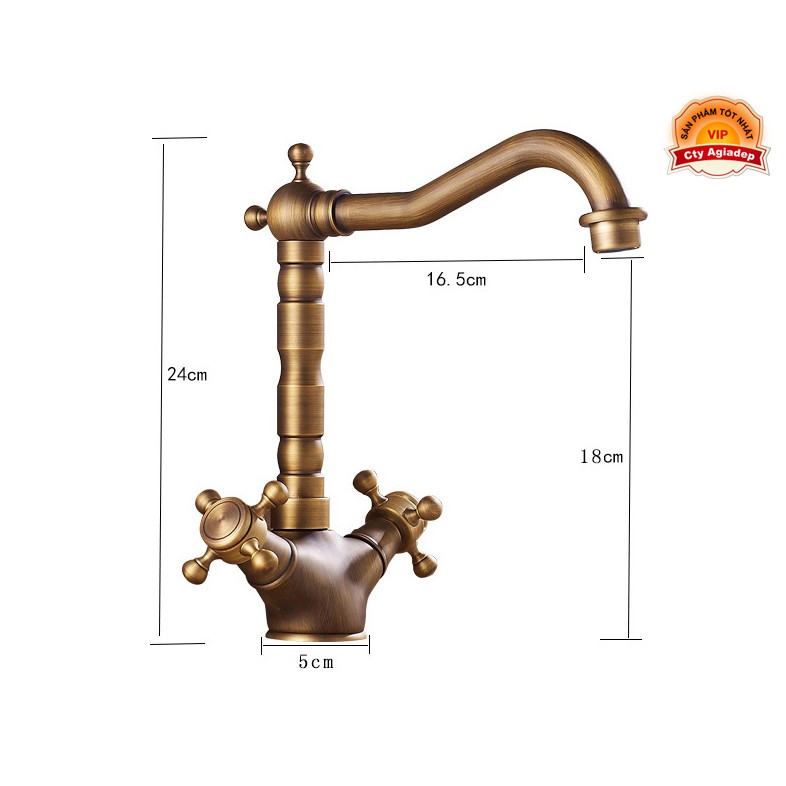 Vòi Lavabo nóng lạnh Tân Cổ Điển (Hợp kim đồng thau) + 2 dây cấp - Hàng Cao cấp ITALIA