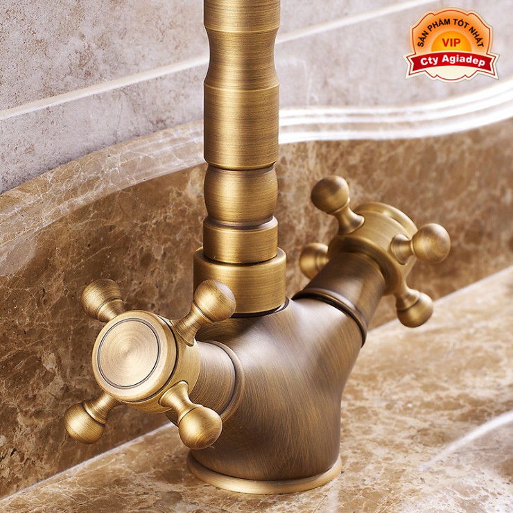 Nhà cửa & Đời sống > Dụng cụ & Thiết bị tiện ích > Chậu rửa & vòi nước || Vòi Lavabo nóng lạnh Tân Cổ Điển (Hợp kim đồng thau) + 2 dây cấp - Hàng Cao cấp ITALIACòn hàng