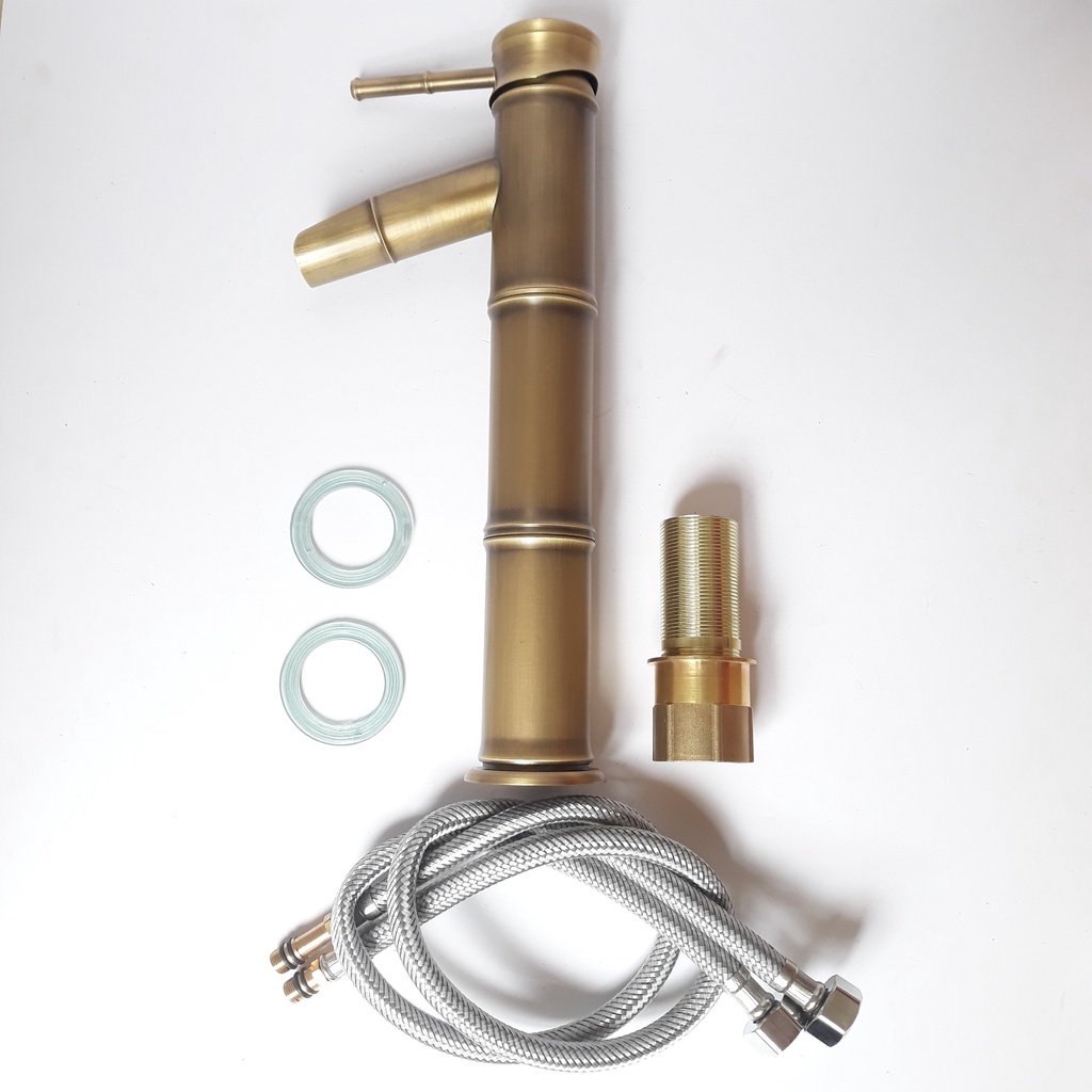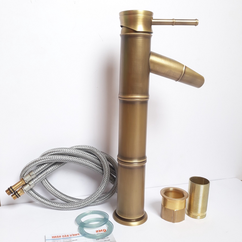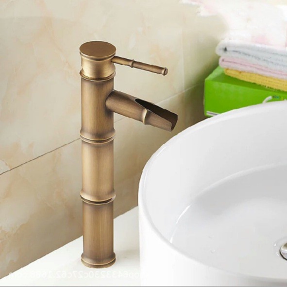 Nhà cửa & Đời sống > Dụng cụ & Thiết bị tiện ích > Chậu rửa & vòi nước || Vòi lavabo nóng lạnh thân trúc giả cổ [30cm] bằng đồng cao cấp, sang trọngCòn hàng