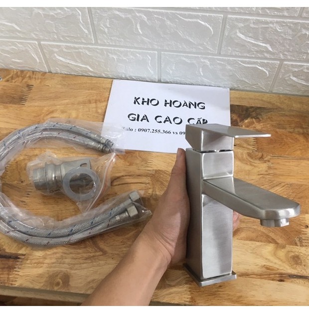Vòi lavabo nóng lạnh thân vuông inox 304 100% vòi rửa mặt có dây cấp