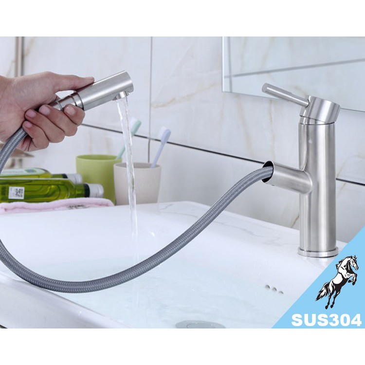 Vòi Lavabo nóng lạnh (trụ tròn, kiêm đầu xịt) SUS304 - Siêu cấp ITALIA (Kèm đôi dây cấp nước)