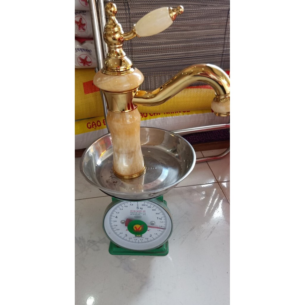 Vòi Lavabo nóng lạnh vàng gắn đá nóng sang trọng, siêu bền,