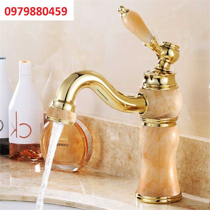 Vòi Lavabo nóng lạnh vàng gắn đá nóng sang trọng, siêu bền,