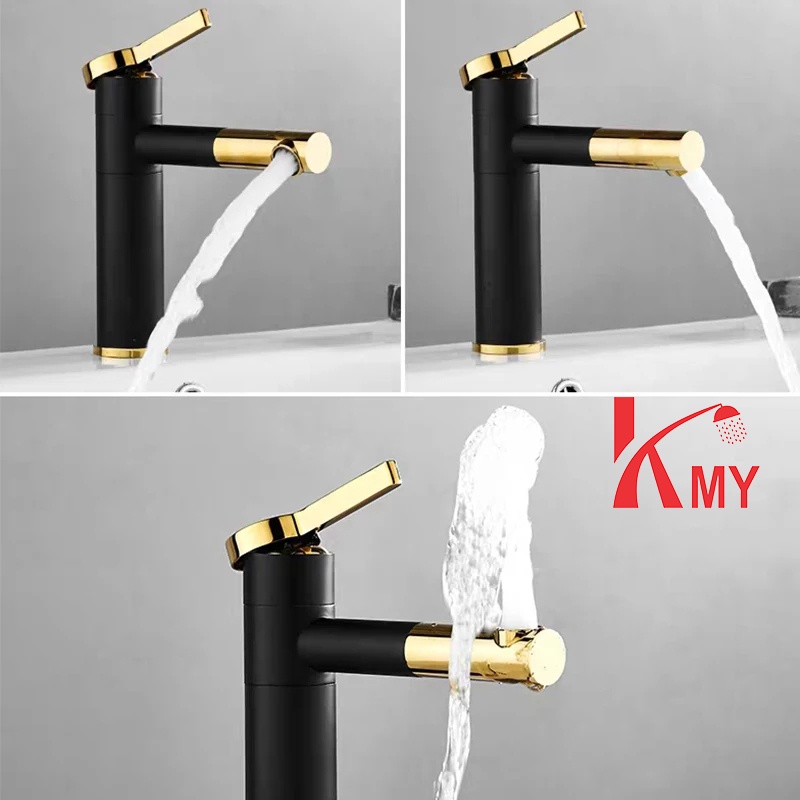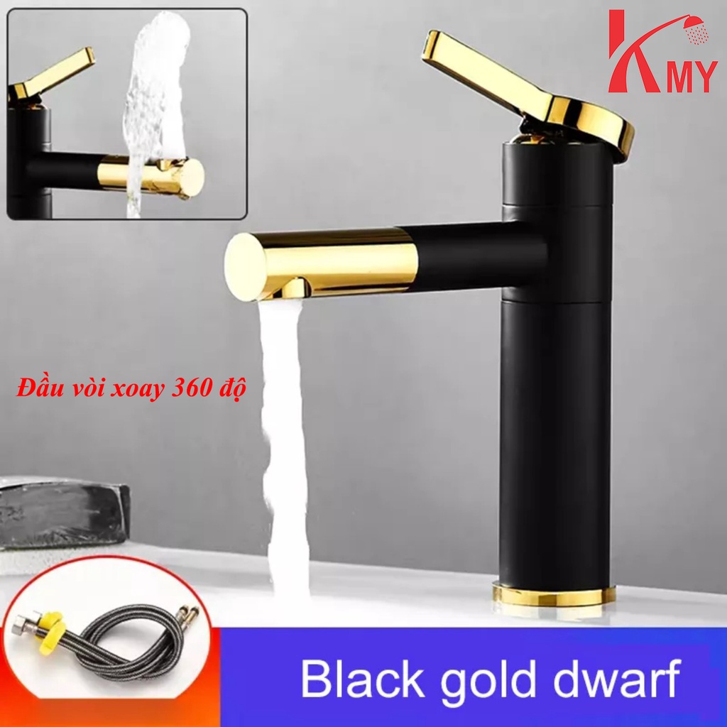 Vòi lavabo sơn tĩnh điện Đen cao 20 cm, đầu vòi xoay 360 độ KMY