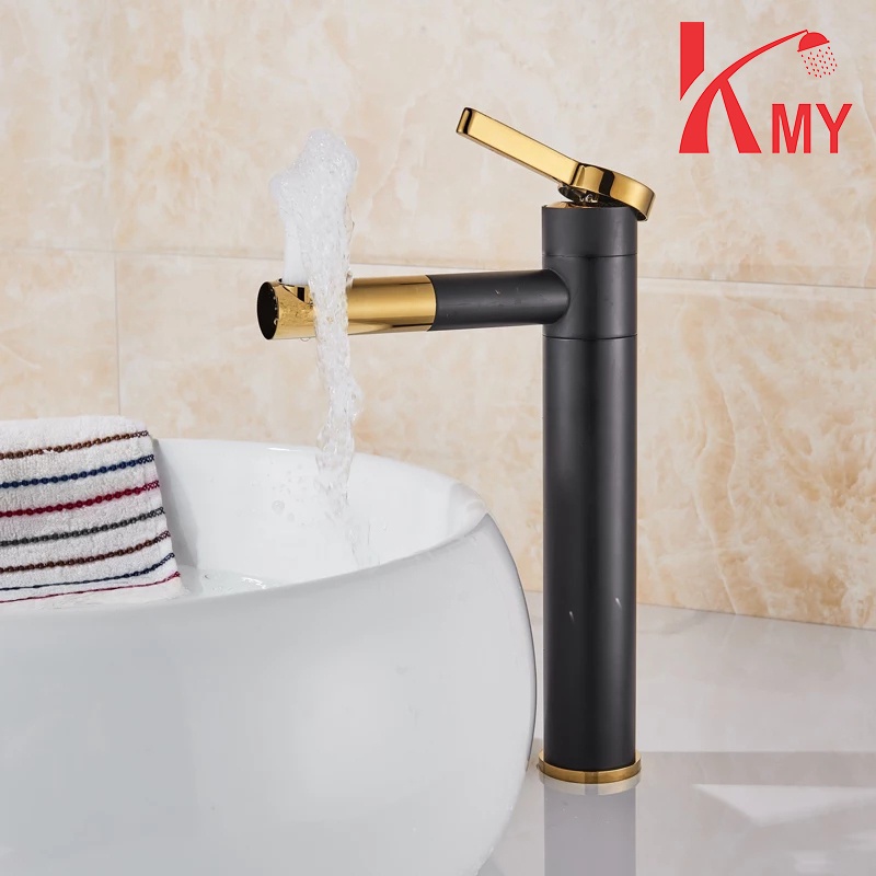Vòi lavabo sơn tĩnh điện Đen cao 30 cm, đầu vòi xoay 360 độ KMY