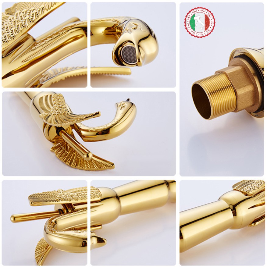 Vòi Lavabo Tân cổ điển siêu xịn đẹp ITALIA hình Cánh chim (Chân cao) + Đôi dây cấp