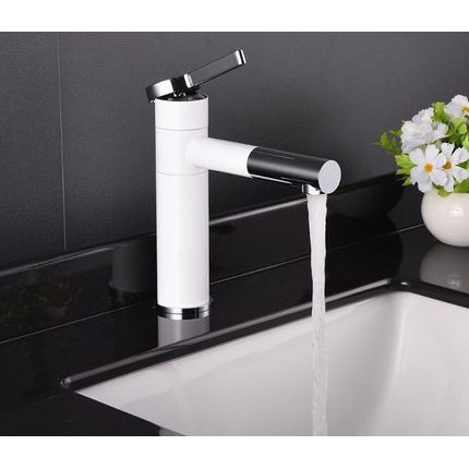 Vòi Lavabo thân cao 20cm màu trắng mạ crom đầu và tay vặn