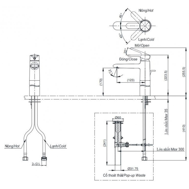Áp lực nước: 0.05MPa ~ 0.75MPa
