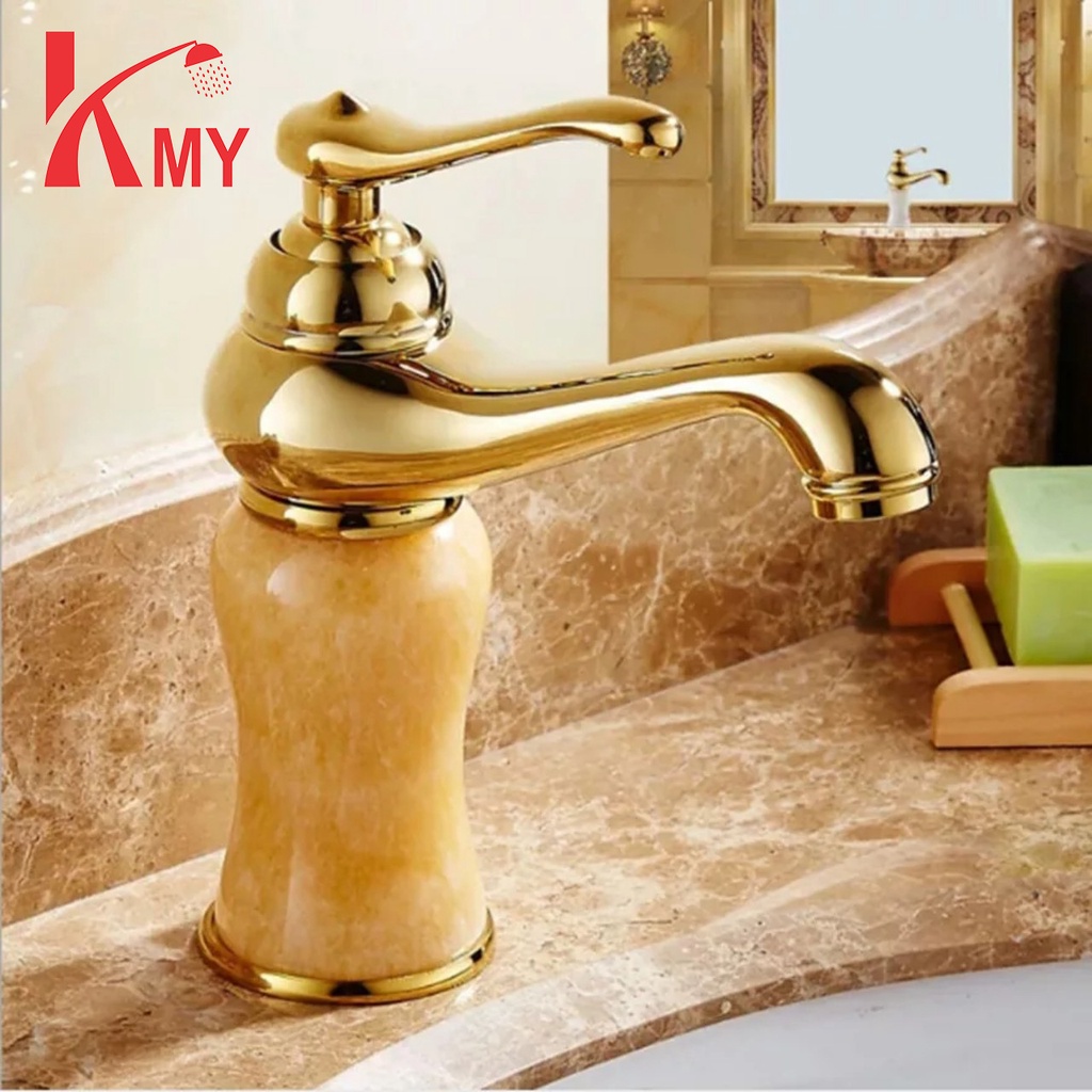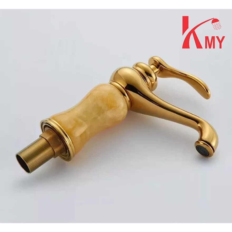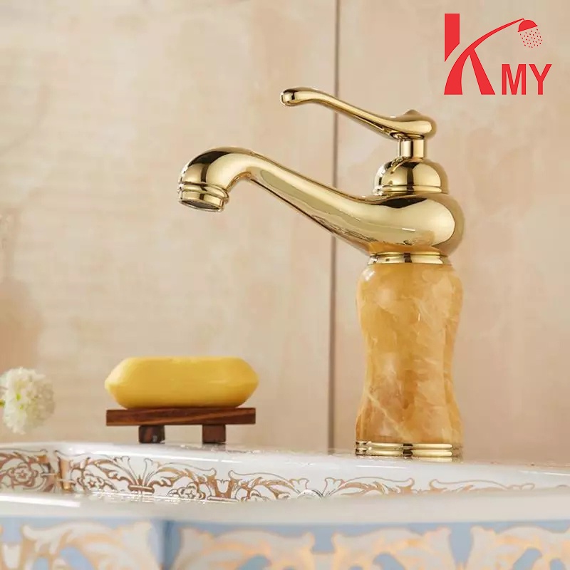 Vòi Lavabo vàng gắn đá marble sang trọng, siêu bền KMY (SL-038)