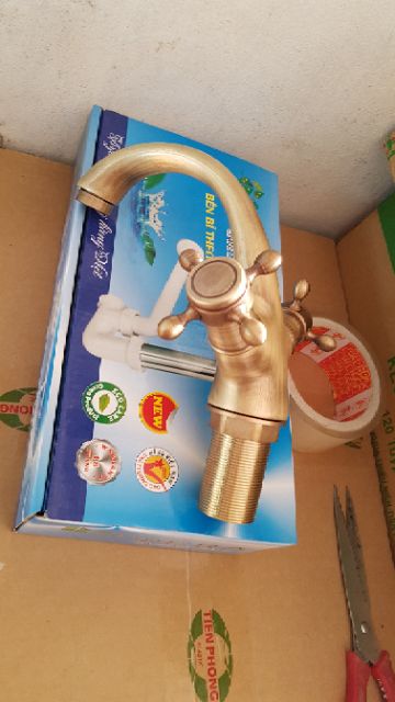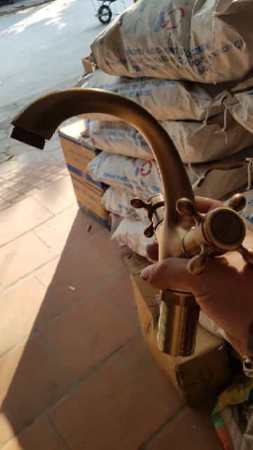 Giới thiệu Vòi lavabo , vòi rửa mặt nóng lạnh cao 20 cm cho chậu để bàn đá màu giả cổ loại cong