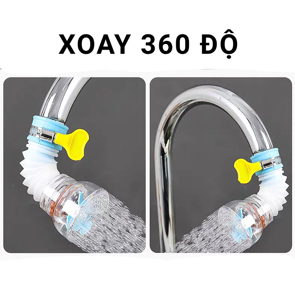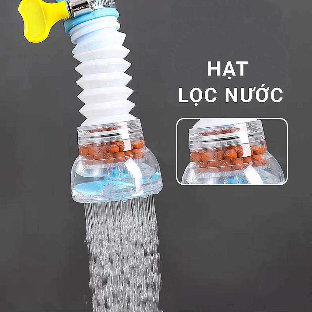- Điều hướng tia nước 360 độ giúp xịt nước đến nơi cần đến, tránh văng nước vào người, tiết kiệm nước trung bình 30%. Xả trôi bụi bẩn trên rau củ quả mà không làm dập nát rau củ như các loại đầu vòi tăng áp thông thường.