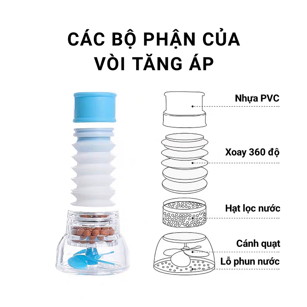 Vòi Lọc Nước Tăng Áp Xoay 360 Độ