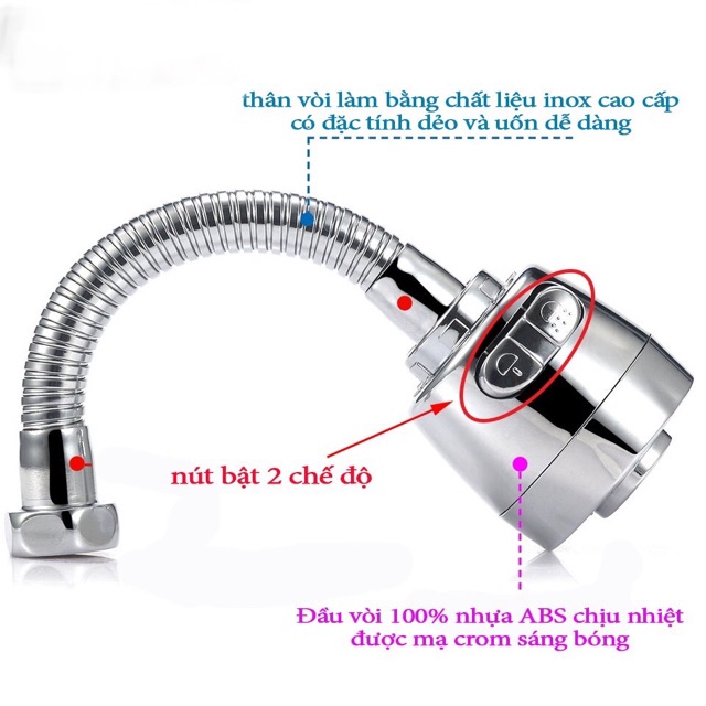 - Nối dài vòi, giúp vòi nước cao không bị bắn vung vít, điều chỉnh dòng nước theo ý mình
