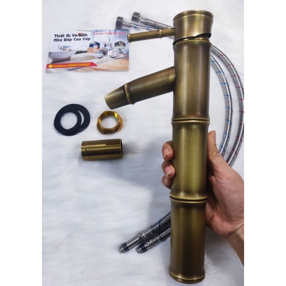 – Vòi nước hình cây trúc, vòi chậu rửa, nóng lạnh. Lấy ý tưởng từ cây tre là loại cây thiên nhiên gần gũi đời sống hàng ngày bao đời nay, bạn có thể tìm thấy hình ảnh chi tiết khắc nhập khắc xuất câu chuyện cổ tích, từng đốt tre nối lại trên thiết bị này mặc dù không phải trăm đốt như câu chuyên kia, vậy nói khi trang bị vòi nước nóng lạnh kiểu hình cây tre trong gian nội thất tạo cảm giác như mang cả thiên nhiên mộc mạc vào gian phòng, làm cho người sử dụng thêm tâm hồn thư thái thiên nhiên thơ mộng.– Thiết bị bằng đồng thau đúc, tông màu đồng cổ, phù hợp không gian kiến trúc mộc mạc, cổ kính, nâu ấm, cổ điển