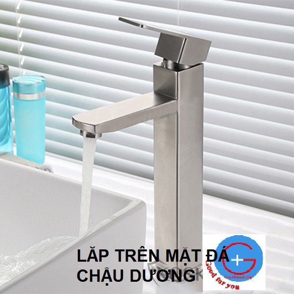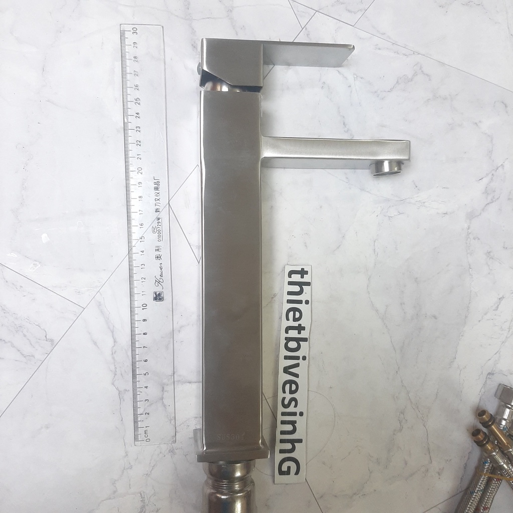 Nhà cửa & Đời sống > Dụng cụ & Thiết bị tiện ích > Chậu rửa & vòi nước || Vòi nóngrửa mặt lạnh inox 304 Vuông- cao 300 (Tặng kèm dây cấp- bảo hành 12 tháng), Vòi lavabo nóng lạnh inox 304Còn hàng