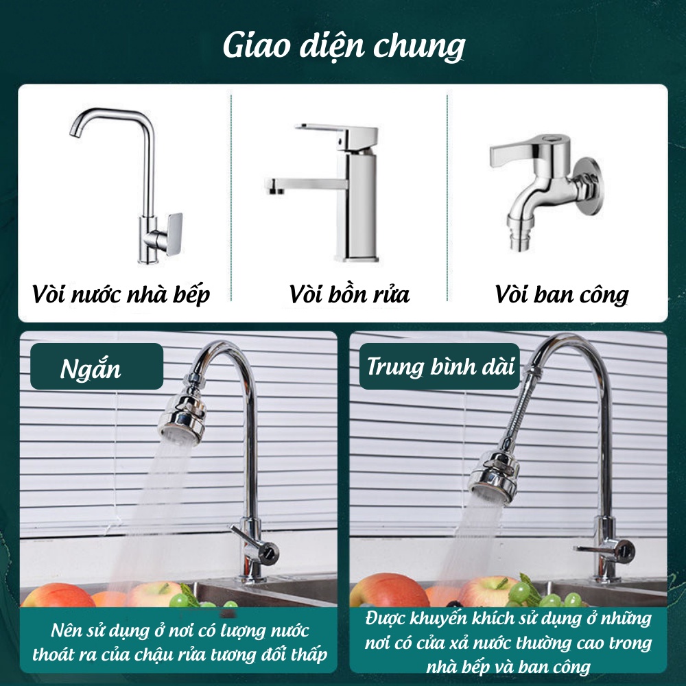 - Nối dài vòi, giúp vòi nước cao không bị bắn vung vít, điều chỉnh dòng nước theo ý mình