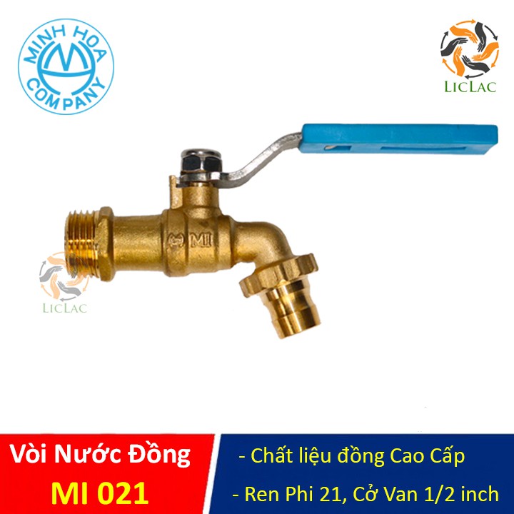 Vòi Nước Minh Hòa MI 021 chất liệu Đồng siêu bền, Vòi Vườn ren Phi 21, Van Khóa Nước - LICLAC