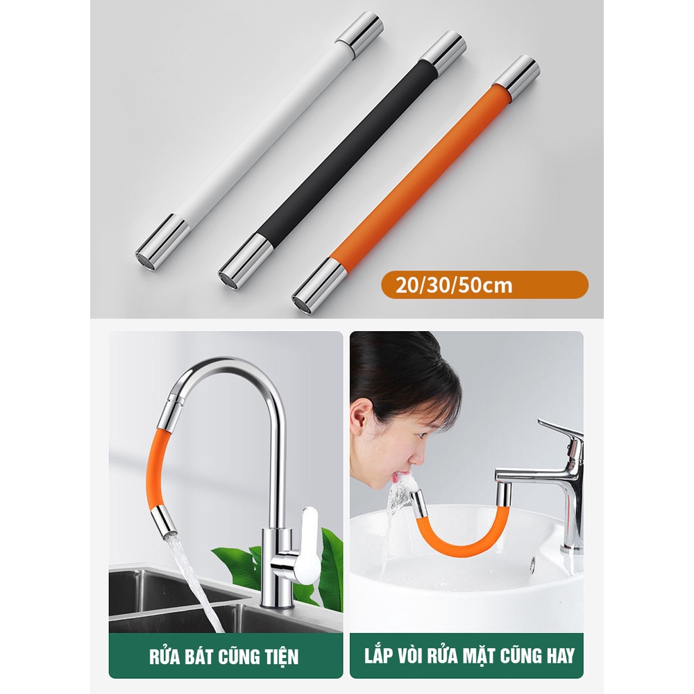 Vòi nước nối dài uốn cong 720 độ chống tung tóe 20cm, 30cm, 50cm, màu Vàng, Đen, Trắng Minh House