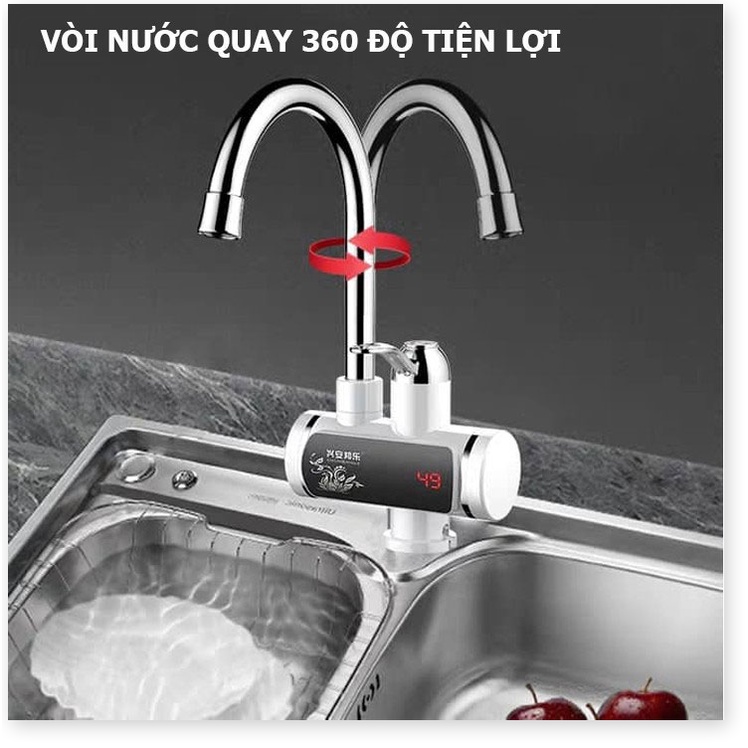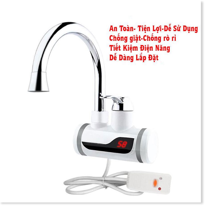 Vòi Nước Nóng Trực Tiếp Rửa BátChống giậtlàm nóng trực tiếp tại vòi, tiết kiệm điện và nước, có Rơ-le chống giật an