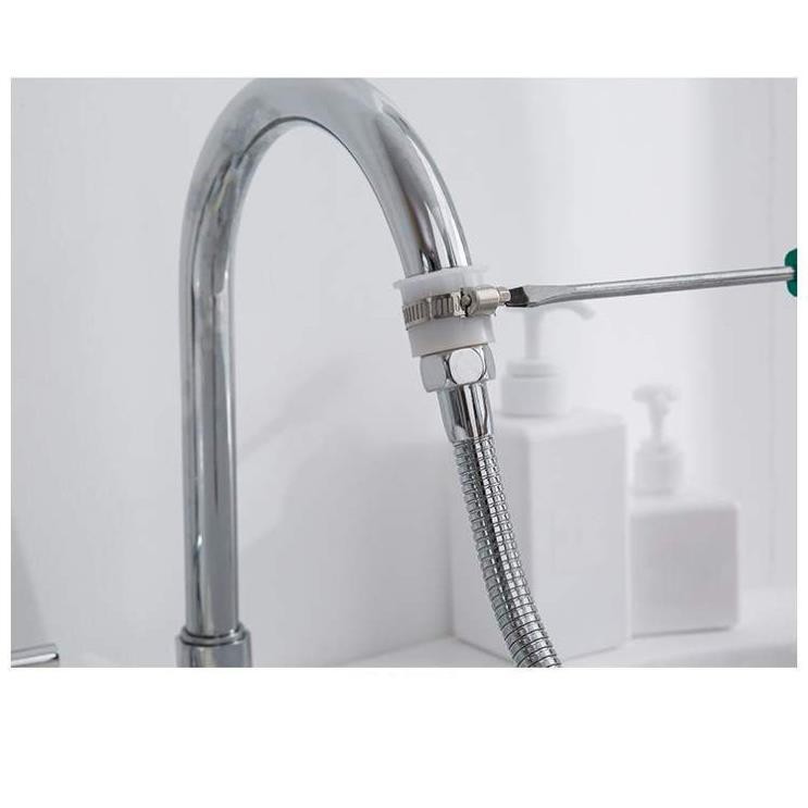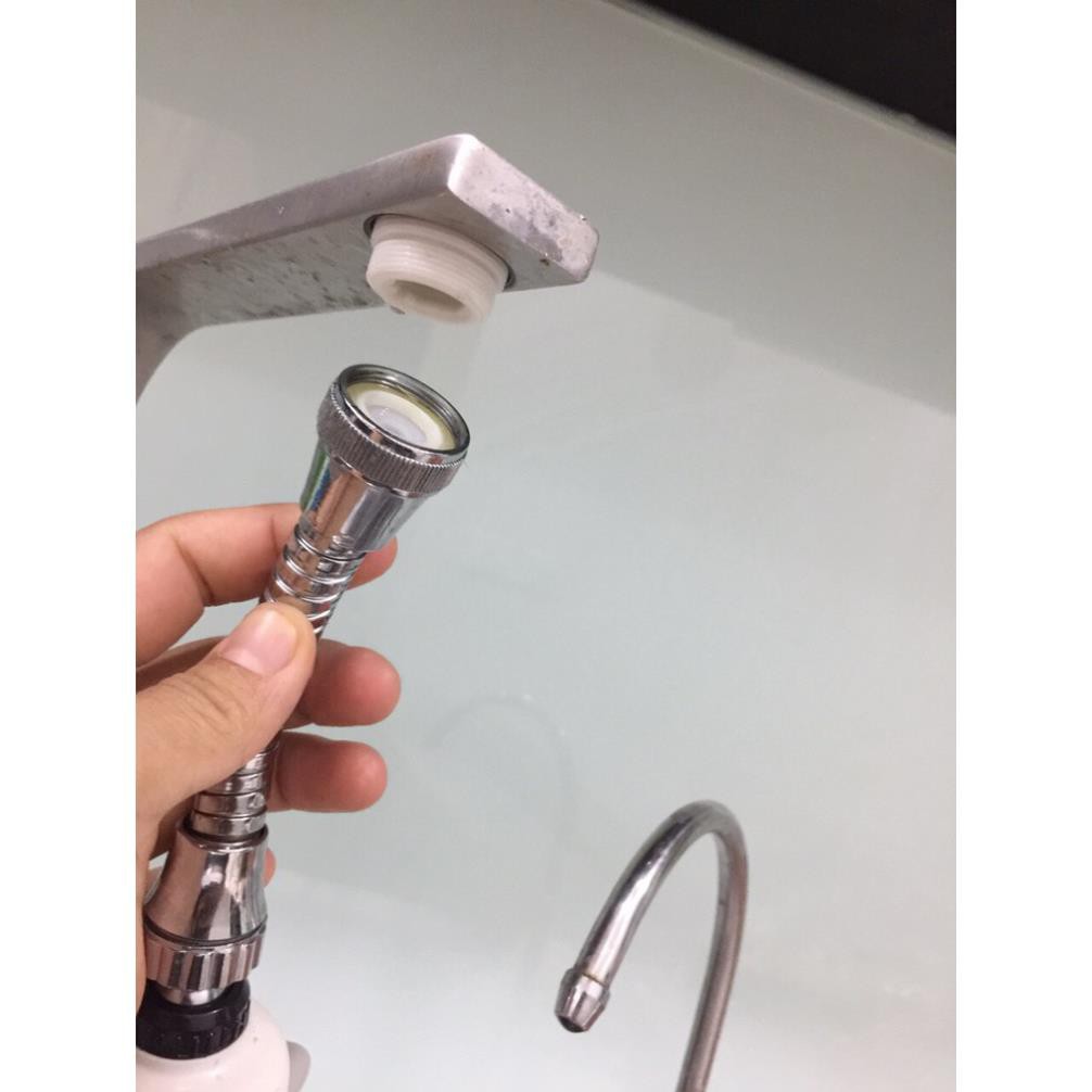 ❷ Dụng cụ nối vòi nước được thiết kế dạng vòi sen với những lỗ phun siêu nhỏ giúp lực phun nước mạnh hơn và tiết kiệm nước hơn đảm bảo hiệu quả thiết thực và tiết kiệm được một lượng nước tối đa. Vòi nước xoay 360 độ về nhiều hướng khác nhau giúp bạn thuận tiện hơn khi rửa chén bát, rau củ, thực phẩm,…hay dễ dàng hơn trong việc lau chùi bồn nước.