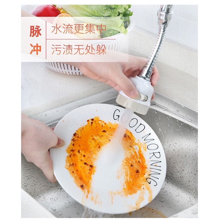 ❷ Dụng cụ nối vòi nước được thiết kế dạng vòi sen với những lỗ phun siêu nhỏ giúp lực phun nước mạnh hơn và tiết kiệm nước hơn đảm bảo hiệu quả thiết thực và tiết kiệm được một lượng nước tối đa. Vòi nước xoay 360 độ về nhiều hướng khác nhau giúp bạn thuận tiện hơn khi rửa chén bát, rau củ, thực phẩm,…hay dễ dàng hơn trong việc lau chùi bồn nước.
