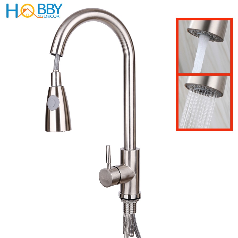 Vòi nước rửa chén nóng lạnh Inox 304 HOBBY Home Decor VDR1 dây rút cao cấp - không rỉ sét và 2 chế độ phun