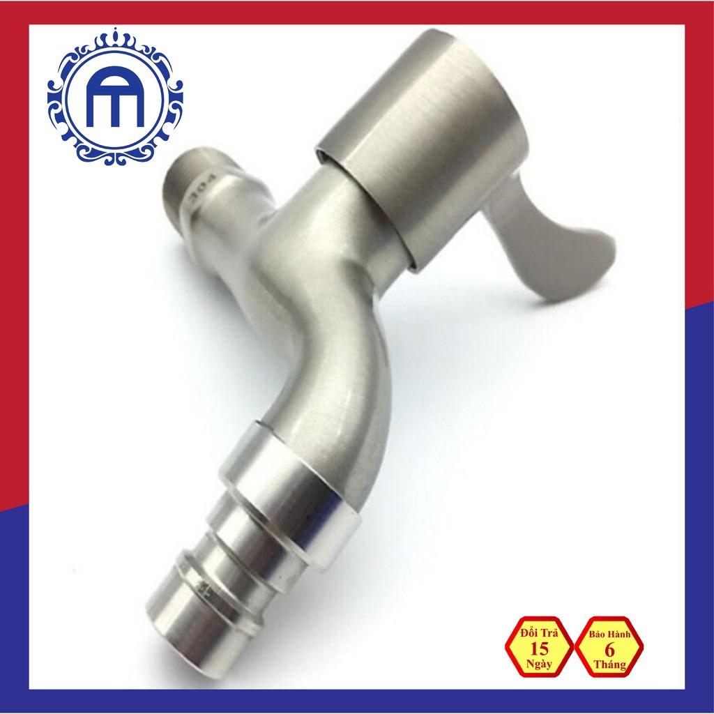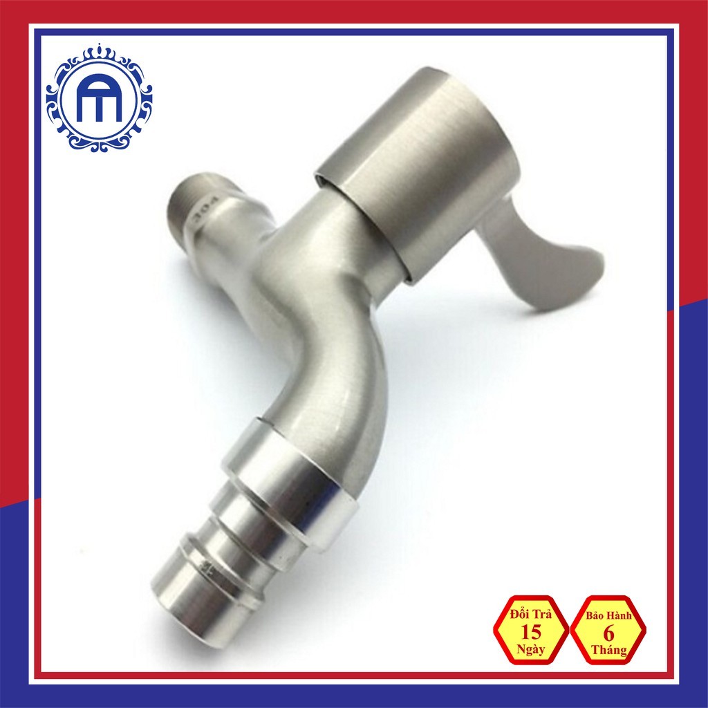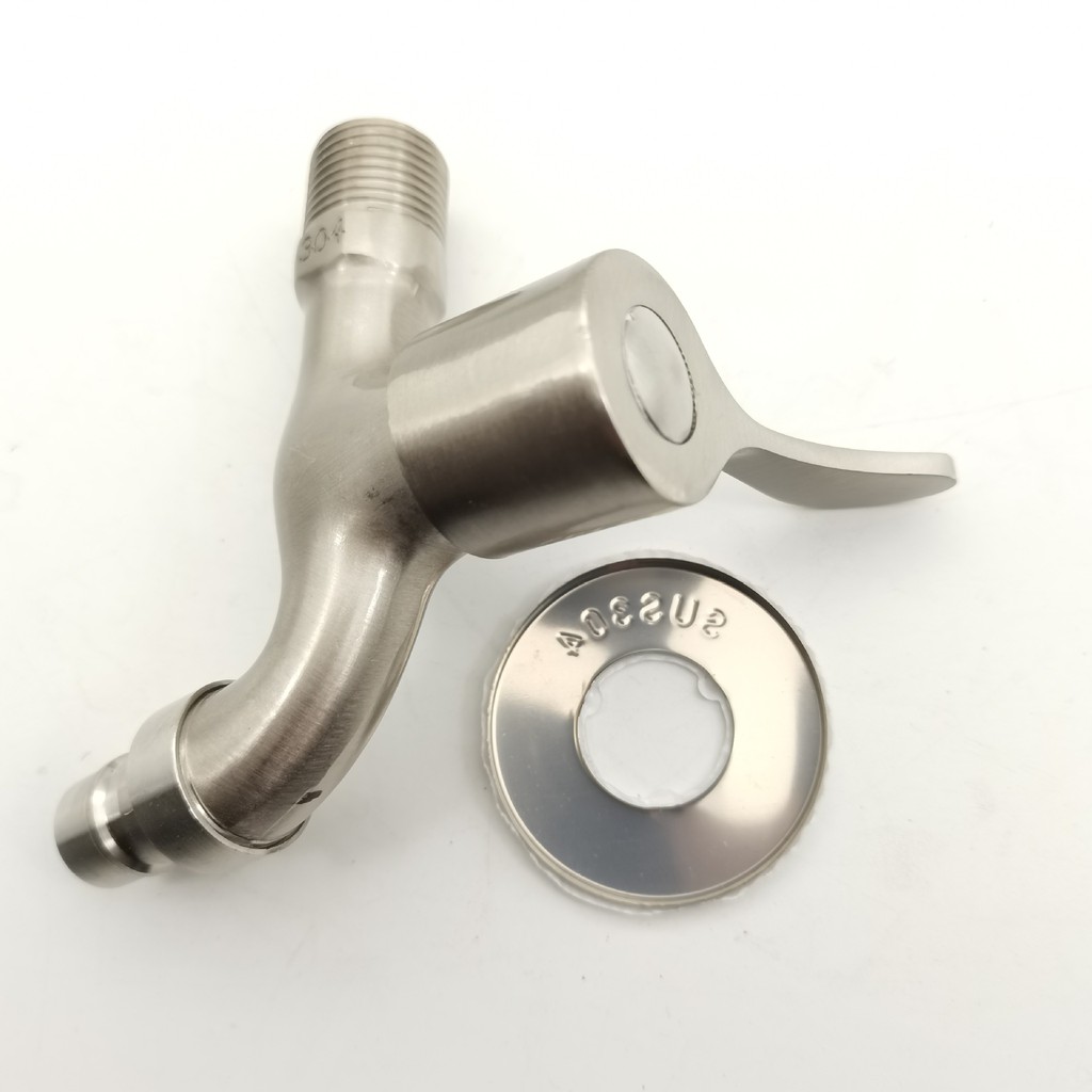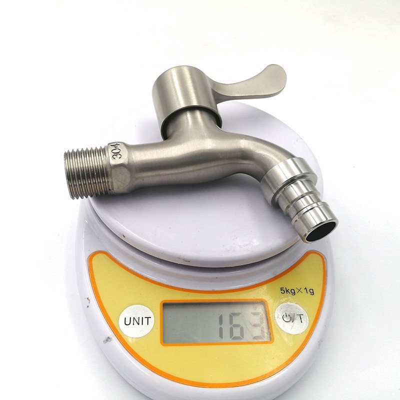 - Vòi máy giặt inox thái tay gạt nước chảy mạnh có đầu ra để gắn ống mềm tưới cây
