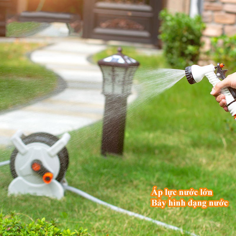Bộ vòi nước tăng áp lực nước kèm Khung cuộn ống nước dạng cuộn tròn 15 mét (Full phụ kiện)