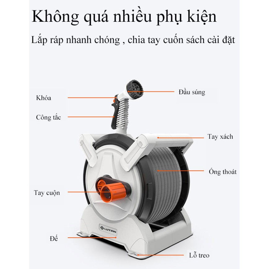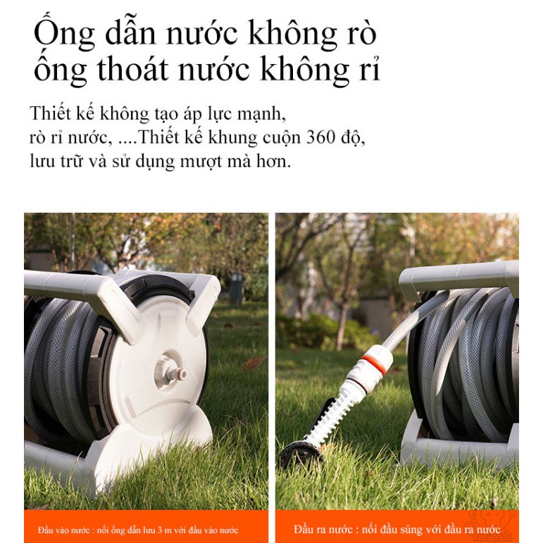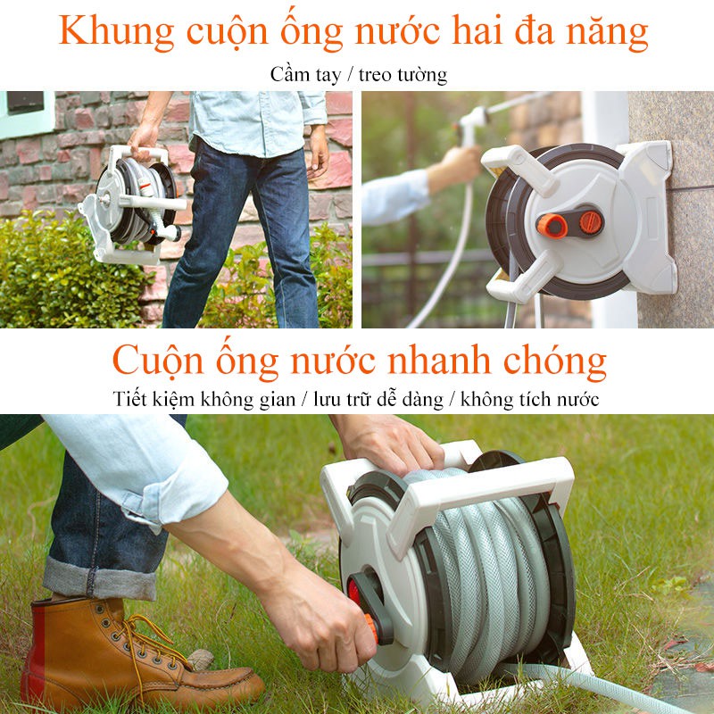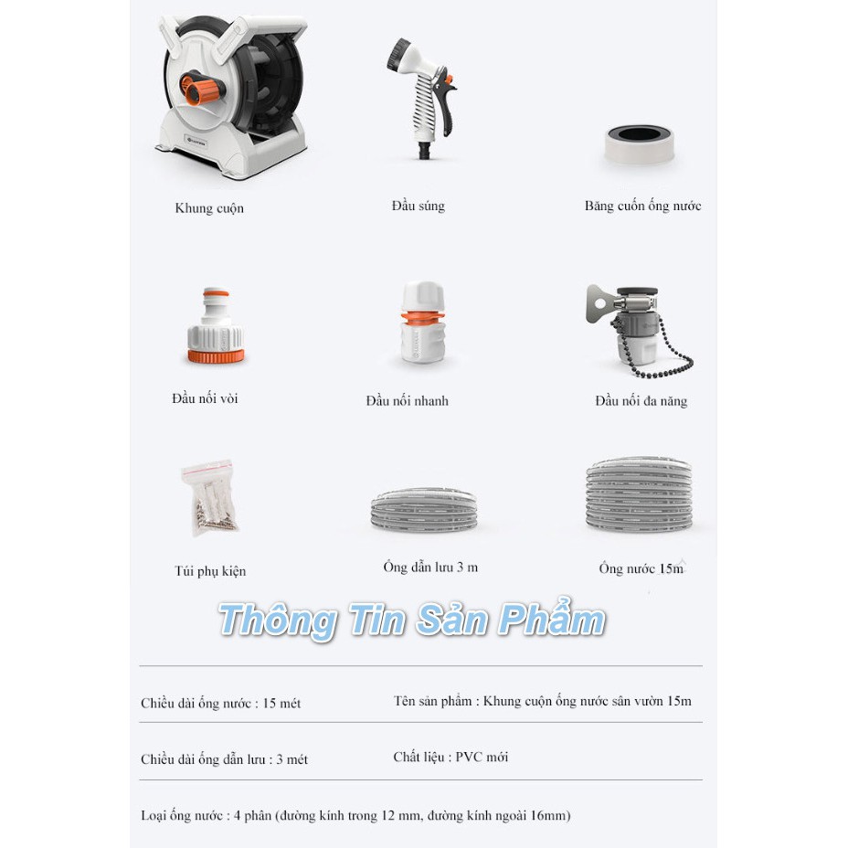Khung cuộn ống nước cao áp quay tay 15 mét (Full phụ kiện)