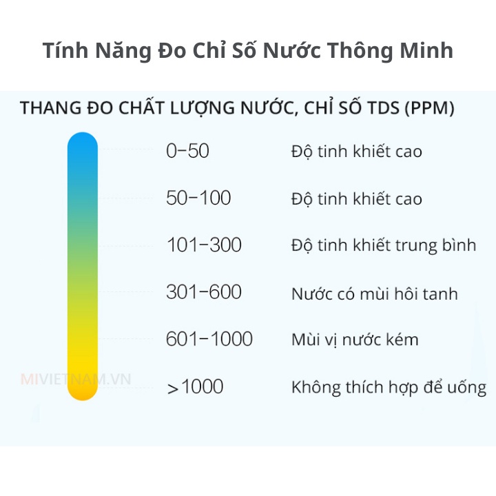 -Thông báo các tạp chất qua TDS,khi TDS càng thấp thì chứng tỏ nước của chúng ta có độ tinh khiết cao và ngược lại.