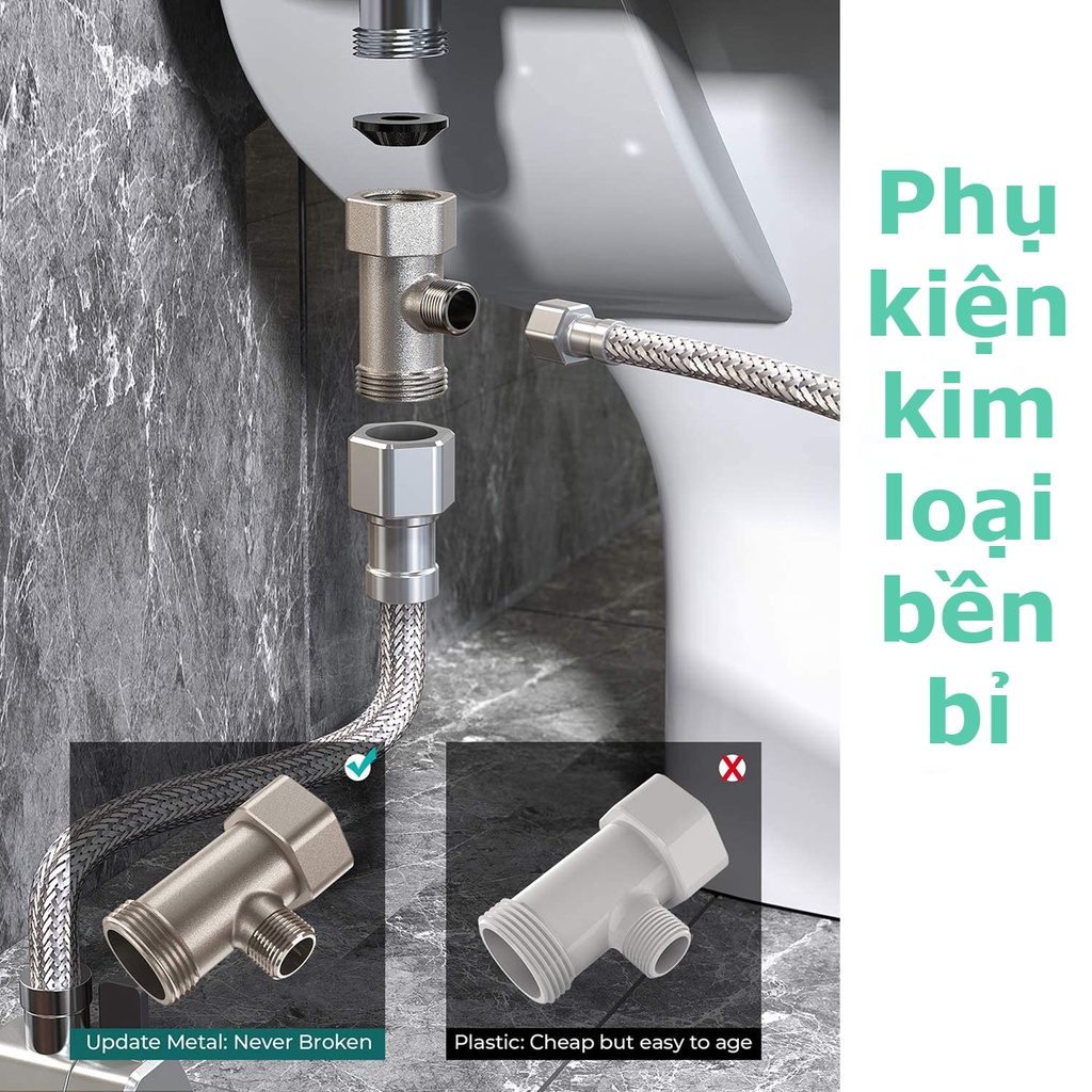 Vòi phun nước rửa mông Vệ sinh sạch sẽ cặn bẩn dính trên mông, vặn nước xả sạch sẽ và không gây đau rát.