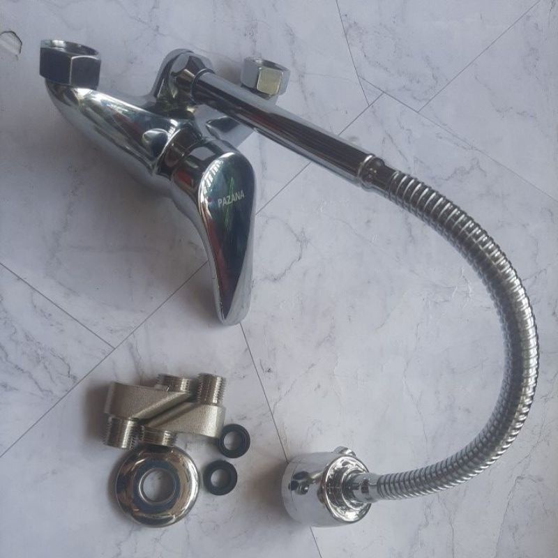 -bộ Sản phẩm gồm vòi rửa bát gắn tường + đôi chân chữ z liên kết vòi vào ống