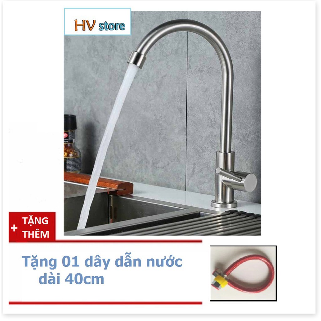 Vòi rửa bát cần cứng cắm chậu, chất liệu inox 304, tặng 1 dây dẫn nước
