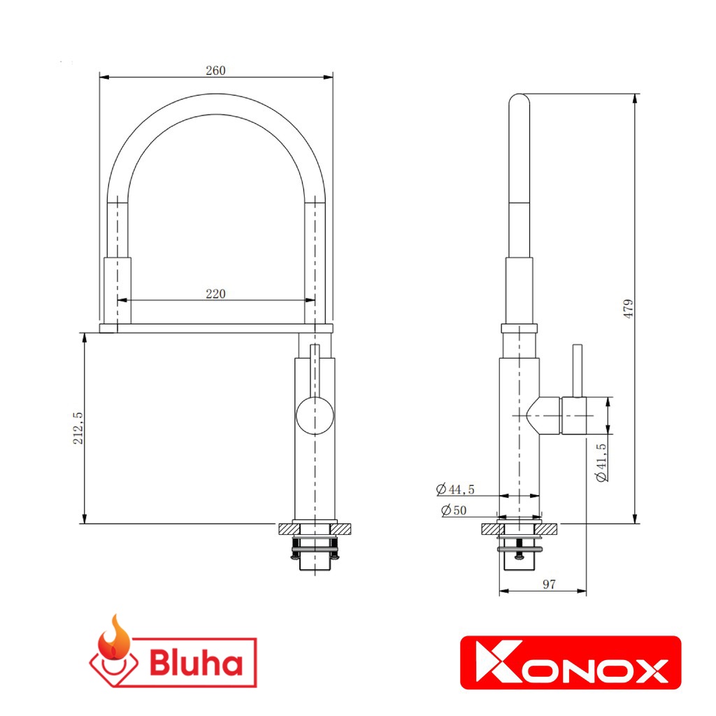 Nhà cửa & Đời sống > Dụng cụ & Thiết bị tiện ích > Chậu rửa & vòi nước || Vòi rửa bát cần mềm KONOX KN-1618 hợp kim đồng tiêu chuẩn Châu Âu, 2 chế độ nướcCòn hàng