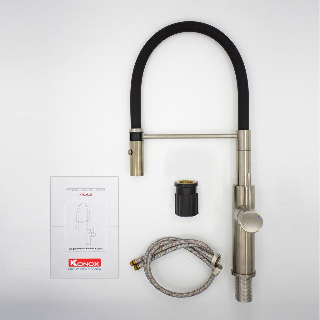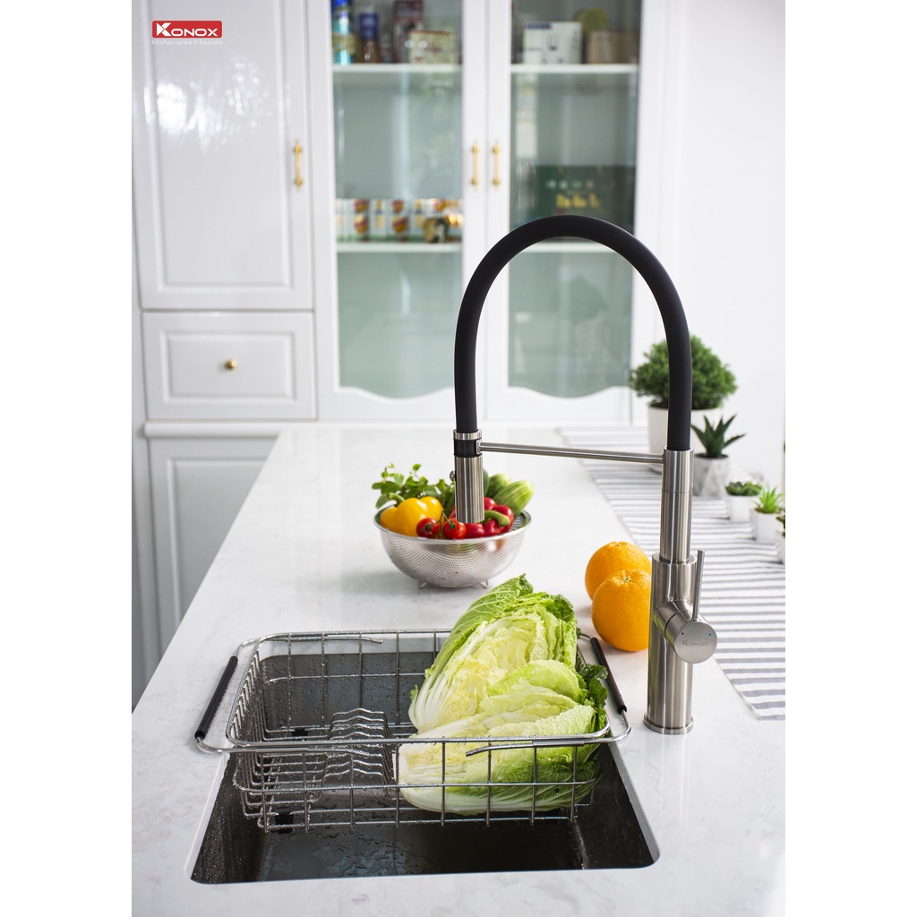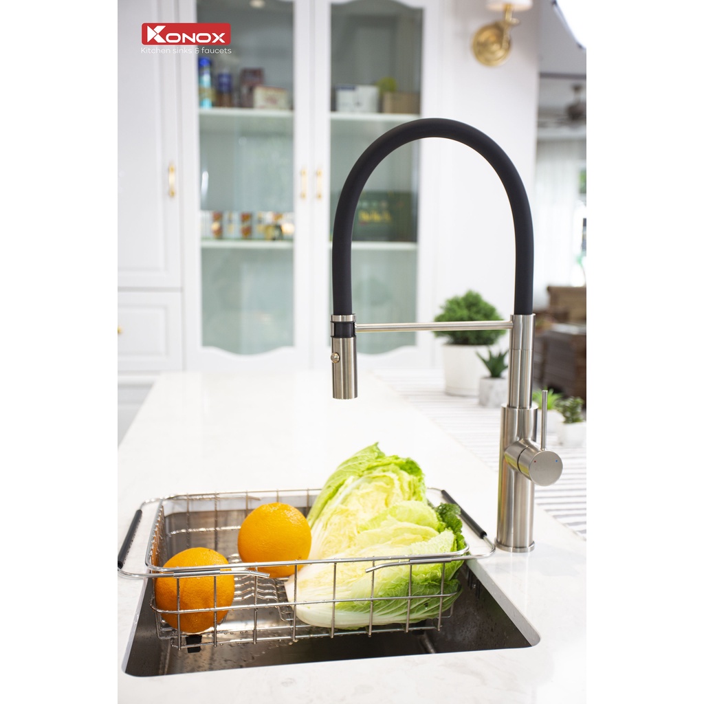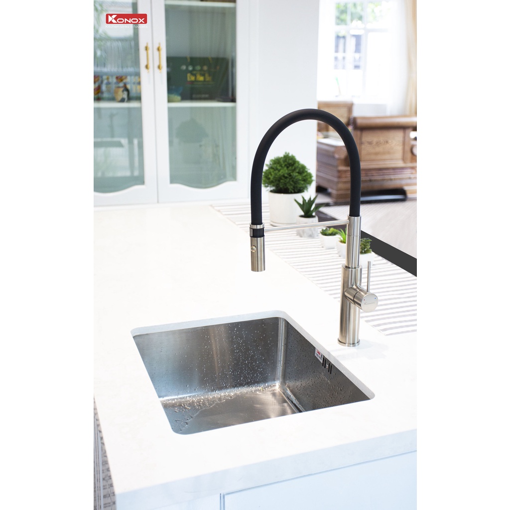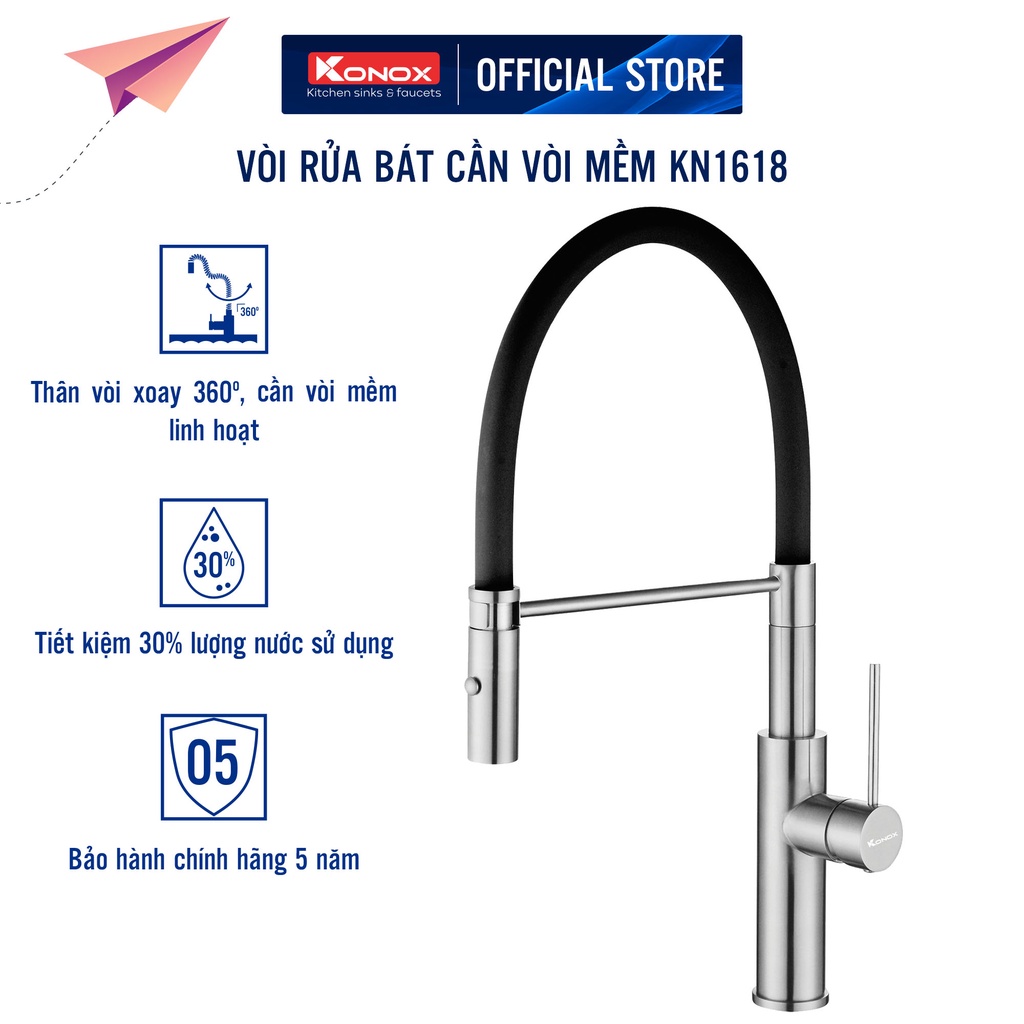 Nhà cửa & Đời sống > Dụng cụ & Thiết bị tiện ích > Chậu rửa & vòi nước || Vòi rửa bát cần mềm KONOX KN1618 hợp kim đồng 61% tiêu chuẩn Châu Âu CW617N, bề mặt xử lý PVD Chrome 5 lớpCòn hàng