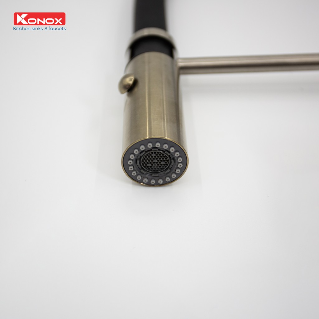 Thân vòi xoay linh hoạt 360 độ với cơ cấu khớp xoay mượt mà nhờ kết nối thân đồng tiêu chuẩn. Konox trang bị đồng bộ định hướng dòng chảy từ thương hiệu số 1 về giải pháp phụ kiện vòi nước tại Thụy Sĩ giúp tiết kiệm nước đồng thời tạo bọt khí chống bắn nước mang lại trải nghiệm tuyệt vời cho người dùng