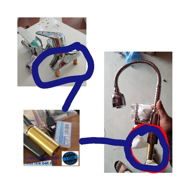 * Chất liệu : chân vòi bằng đồng màu vàng .