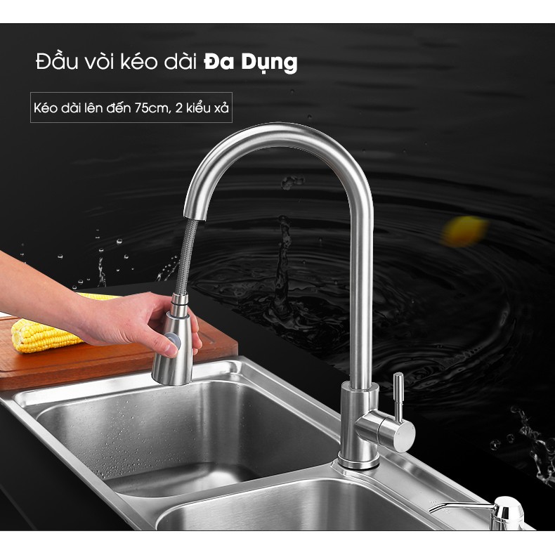 🌟Thiết kế đặc biệt vừa có thể sử dụng như những vòi rửa bát thông thường vừa có thể kéo dài như vòi sen cho công việc rửa chén bát, rau củ & lấy nước để đun nấu linh hoạt hơn.