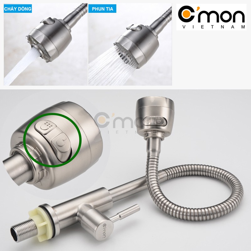 Vòi rửa bát chén lạnh inox 304 cao cấp lò xo xoay 360° C'MON VBL-01- Thương hiệu: C'mon Vietnam