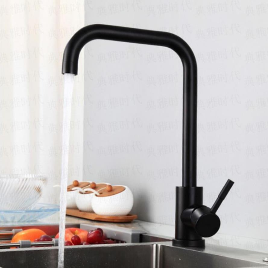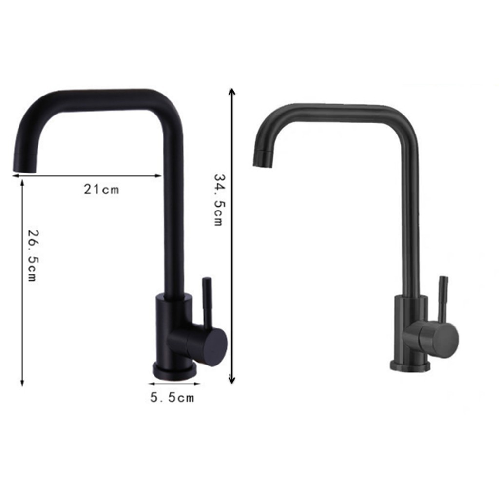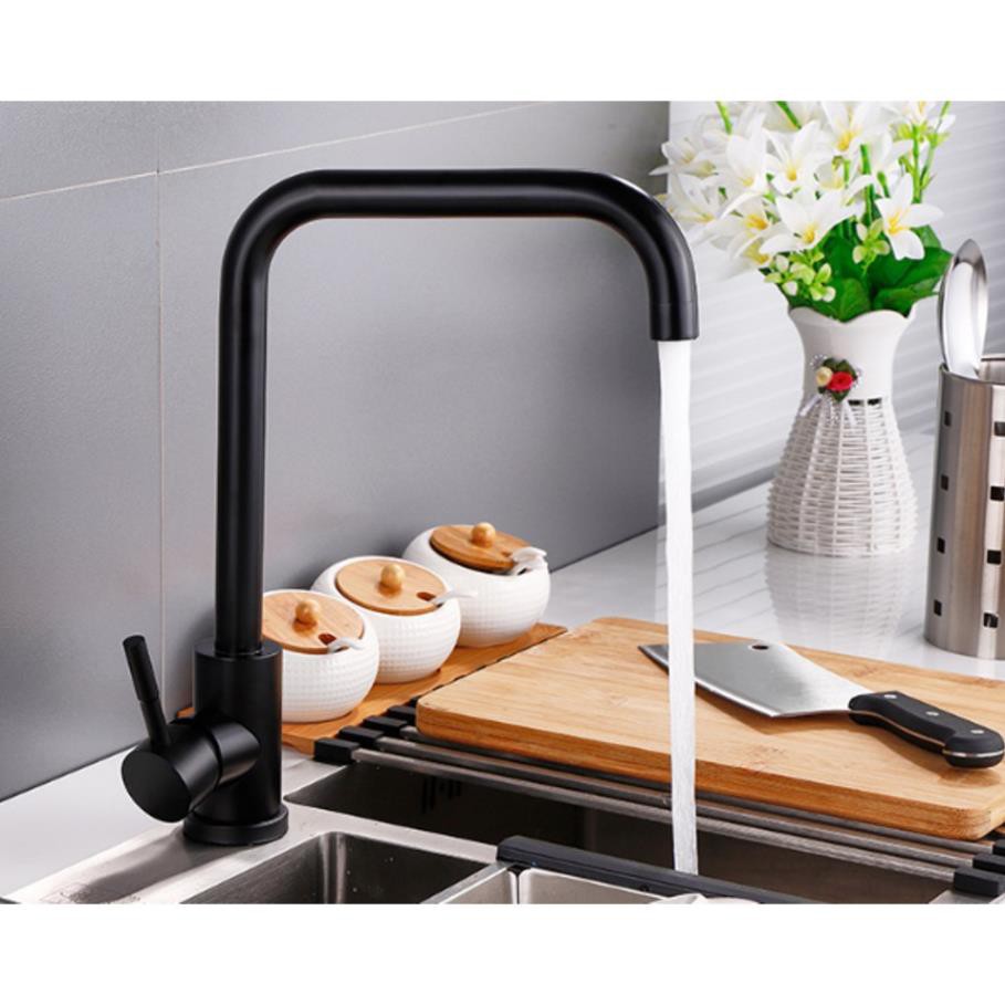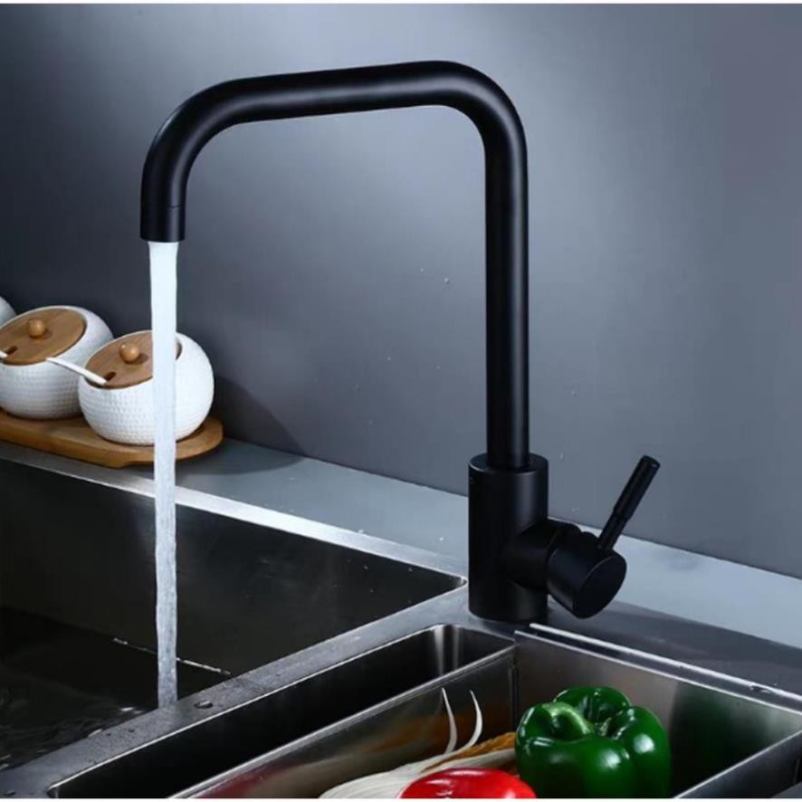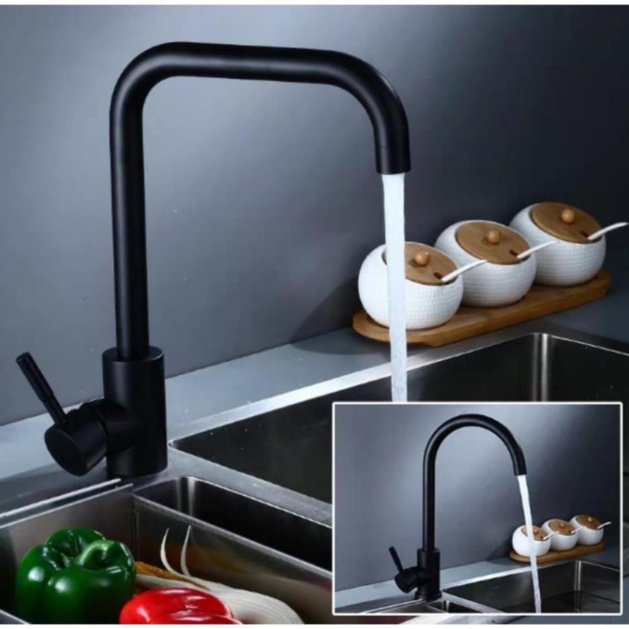 Nhà cửa & Đời sống > Dụng cụ & Thiết bị tiện ích > Chậu rửa & vòi nước || Vòi rửa bát , chén nóng lạnh màu đen cao cấp, Inox 304, Vuông uốn cong ống lớnCòn hàng