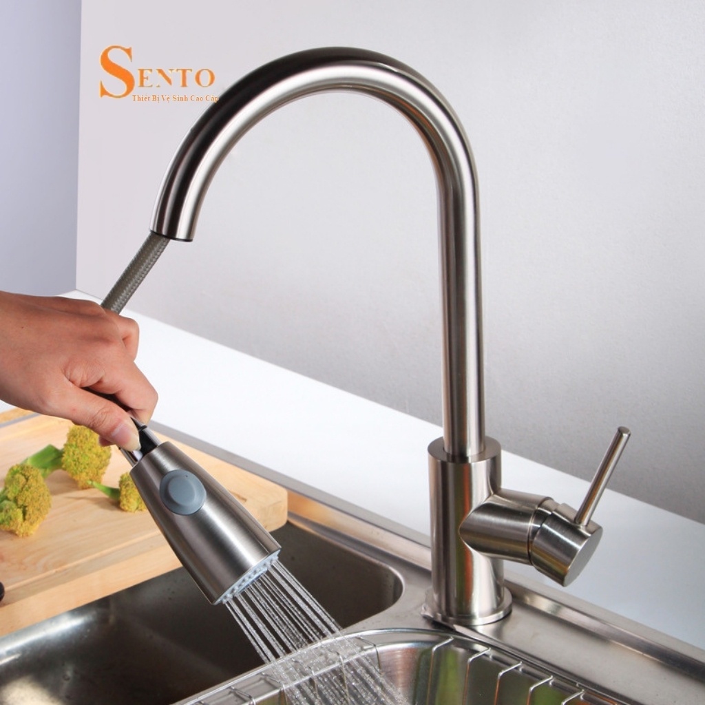 Nhà cửa & Đời sống > Dụng cụ & Thiết bị tiện ích > Chậu rửa & vòi nước || Vòi rửa bát dây rút SENTO tăng áp nóng lạnh bồn rửa chén bát ST25Còn hàng