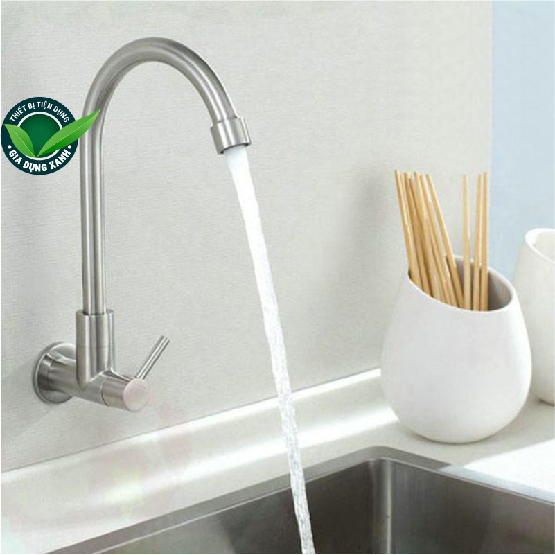Vòi rửa bát gắn tường bằng inox 304Chất liệu: Inox Xước Mờ SUS304 siêu bền.