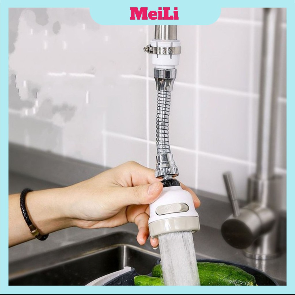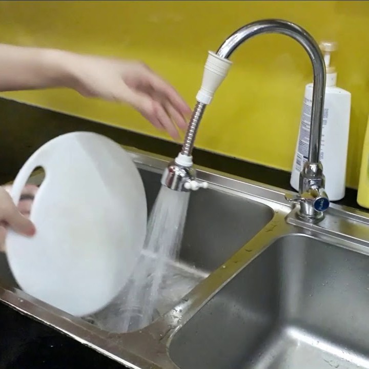 ❷ Dụng cụ nối vòi nước được thiết kế dạng vòi sen với những lỗ phun siêu nhỏ giúp lực phun nước mạnh hơn và tiết kiệm nước hơn đảm bảo hiệu quả thiết thực và tiết kiệm được một lượng nước tối đa. Vòi nước xoay 360 độ về nhiều hướng khác nhau giúp bạn thuận tiện hơn khi rửa chén bát, rau củ, thực phẩm,…hay dễ dàng hơn trong việc lau chùi bồn nước.